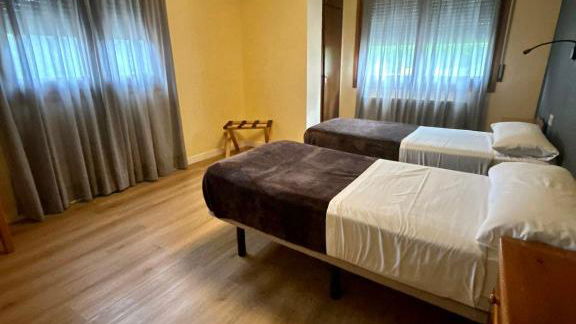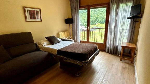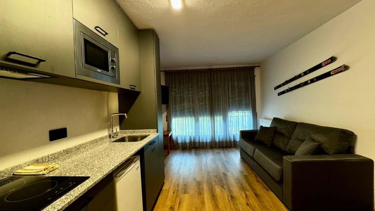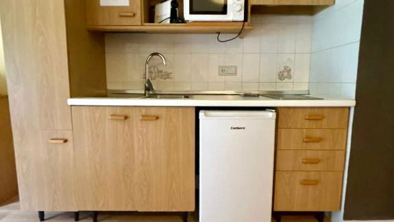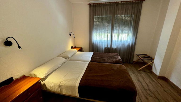 Each unit has a bedroom with two single beds, a living-dining room with a sofa bed for two people, and an integrated kitchen equipped with a small refrigerator, a microwave, a ceramic hob, and basic utensils. They also have a Smart TV, heating, a safe, bed linen, and towels.