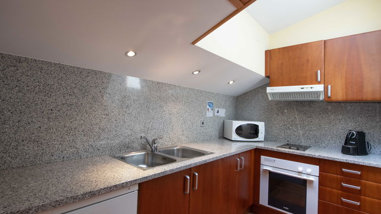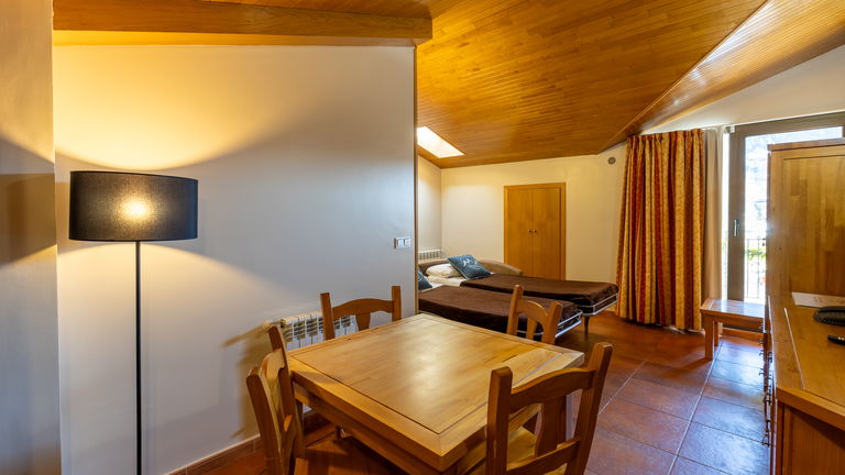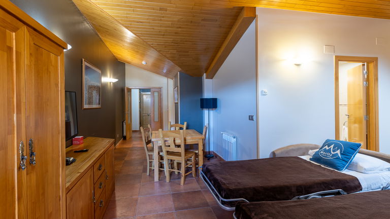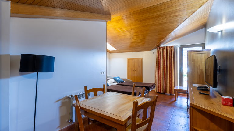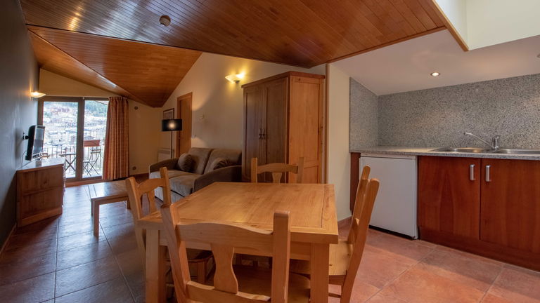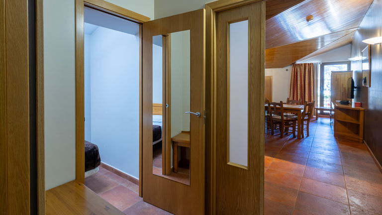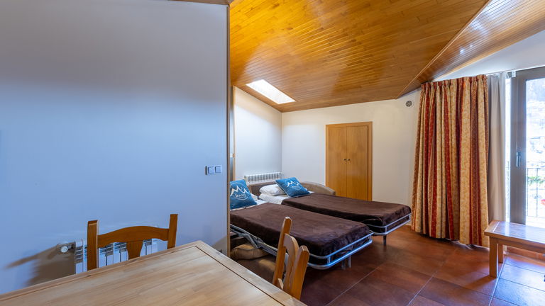 Designed for 3 to 5 people, our comfortable vacation rental apartment type B include a twin bedroom, a single bedroom, a bathroom, a sofa bed for 2 people in the living room, flat screen TV, balcony and full kitchen. A great option that ensures all the rest and comfort you need while on holidays in Arinsal - Andorra.