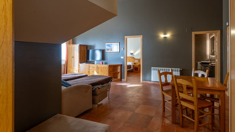 These apartments are more spacious than the standard ones and feature a small balcony with views of the mountain or the side of the building.